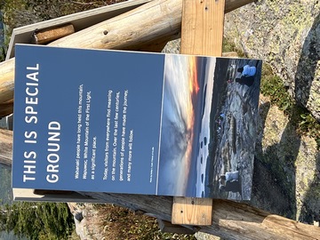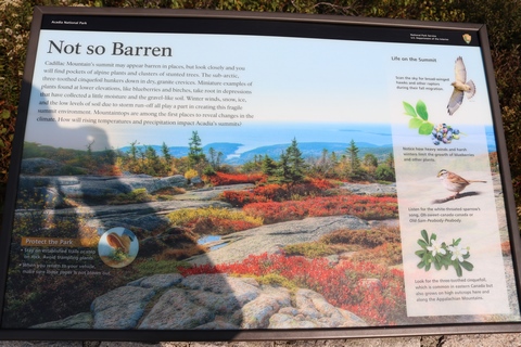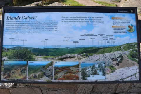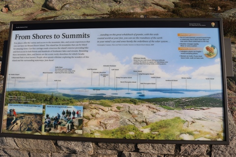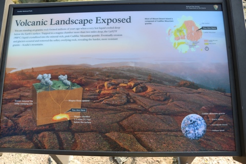 There was a small path around the south side of the summit, with several signs telling about the geography and surrounding islands and summits. The signs claimed the granite mass was formed in a magma chamber then the softer layers on top were eventually eroded away.