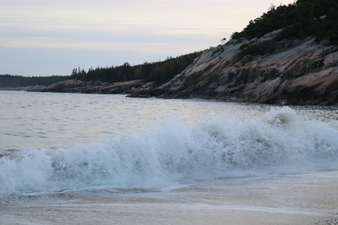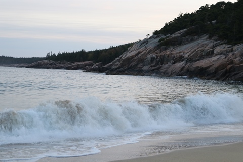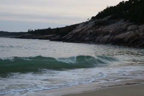 September 2023 (Part 06) Maine Trip - Wednesday, Sep 27: Bar Harbor and Sand Beach and Cadillac Mountain in Acadia NP Andy finished his first session of his Masters program at the end of September and decided to move home from the beach, both as business at the restaurant he's working at was falling off with the summer over and the next session is supposed to be harder. We took an opportunity with the week off he had between sessions to head to a National Park none of us had been to, choosing to go to Acadia NP in Maine. We flew into Portland, ME and drove up the coast to our hotel in Bar Harbor, stopping at the LL Bean flagship store across from their headquarters in Freeport. We got onto Mount Desert Island and into Bar Harbor later in the afternoon and decided to head to Sand Beach in Acadia then drive around part of the loop road.