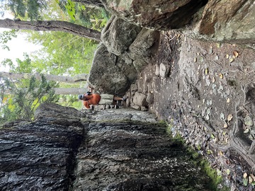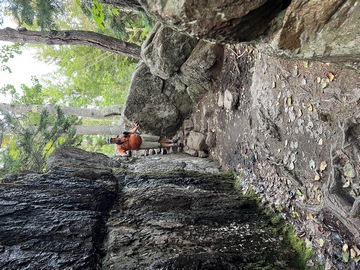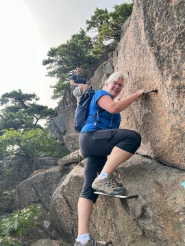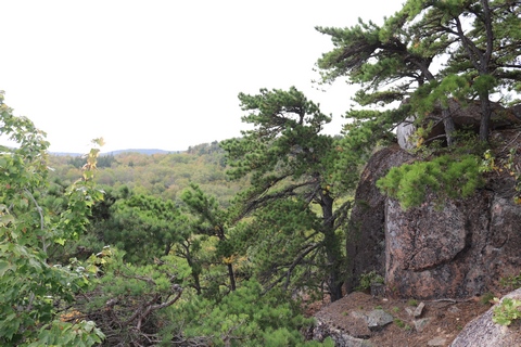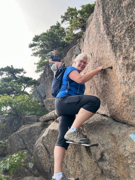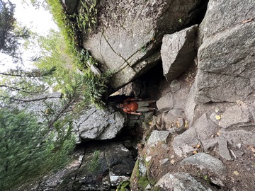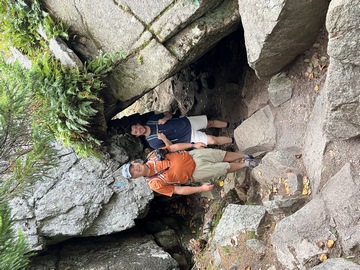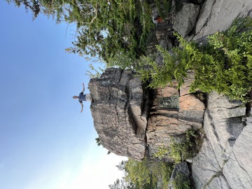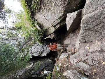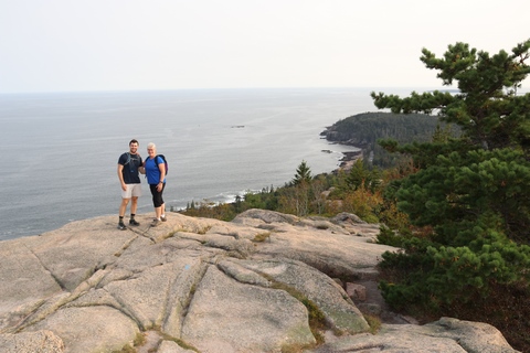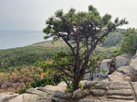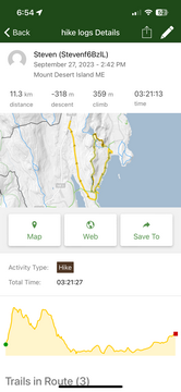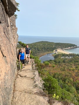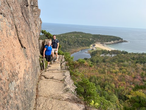 September 2023 (Part 08) Maine Trip - Wednesday, Sep 27: Beehive Trail, the Bowl, and Gorham Mountain Trail After lunch, we headed back east to the Sand Beach parking area and upped the ante, heading up the Beehive Trail. We combined this route with a loop to the Bowl, then descended along the Gorham Mountain Trail and came back to the parking lot along the Ocean Path. Note Steve forgot to stop the trail app, so the GPS recorded part of our drive after the hike.