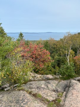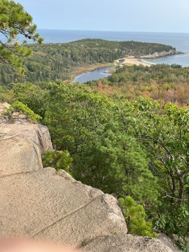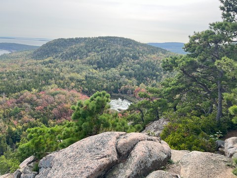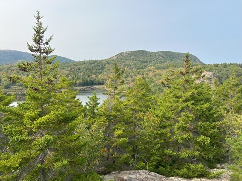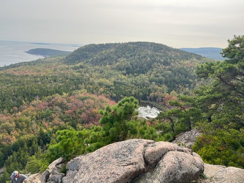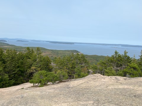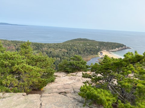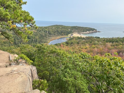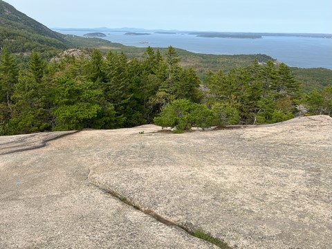 As we ascended, we could look back over Sand Beach and the eastern side of Mount Desert Island and Acadia NP.