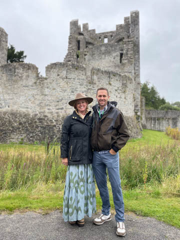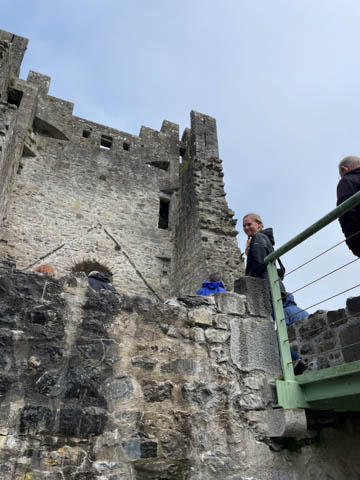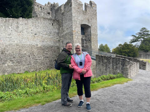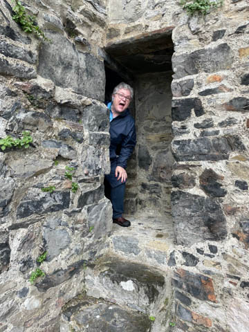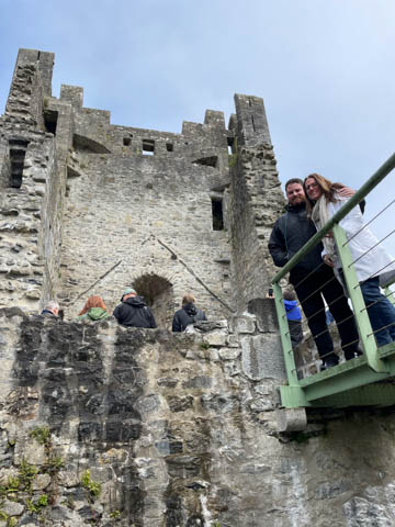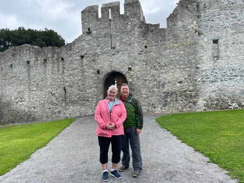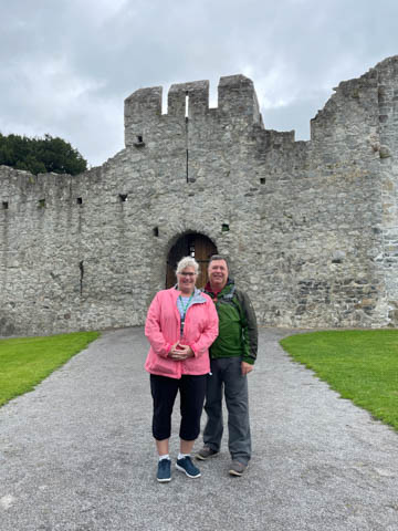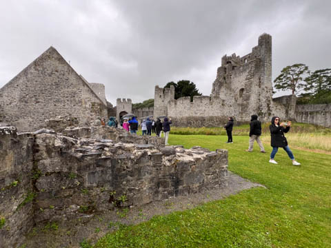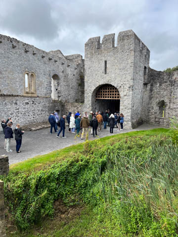 September 2024 (Part 03) Ireland Trip (Day Six): Killarney to Ennis (The Royal Treatment) We left Killarney, headed northeast and stopped in the small town of Adare. A historic market town dating to the Middle Ages, this town was fascinating and was designated a heritage town by the Irish government. The town is along the River Maigue, which is tidal all the way from the Shannon estuary to Adare, a distance of over 17 km. We got a quick look at our destination as we crossed a small bridge. Our first stop was at Desmond Castle (Adare), named that way as there are four different castles named Desmond Castle and built by the Earls of Desmond. A castle or fortress is said to have first been built with an ancient ring-fort, by the O'Donovans, rulers of the region into the 12th century, and afterwards to have passed into the possession of the Kildare branch of the FitzGerald dynasty, who may be responsible for the majority of the remains of the present fortress (which occurred with Croom Castle, also on the Maigue). Desmond Castle, as it is popularly known (after the FitzGeralds of Desmond), stands on the north bank of the Maigue. An extensive renovation has been in progress on the castle since 1996. I pulled the last three images below from the web (obviously, as we don't have a drone and certainly didn't bring one of the trip). They show the castle against the river bank adjacent to a small waterfall which marks the end of the tidal, and navigable, part of the river, making the narrow point strategically important and a great place from which to extract taxes on travel and trade goods. The castle featured a tall keep, a huge long room/building, and internal grounds.