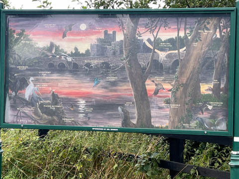 After visiting the castle, we got back on the bus for the short trip into Adare, stopping at a rest area and then heading into the town. Leisha had described the options for lunch and walking around and mentioned there was a river walk along the River Maigue where we might see wildlife, including otters. So, she quickly had us there and after hearing that was our plan, she opted to join us as she had never wandered there either, despite have come to the town many times. Glad she was with us to help find our way, eventually discovering a nice elevated paved walkway along the one branch. No otters, but we saw a heron along the river along with a number of small songbirds.