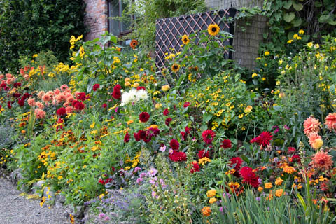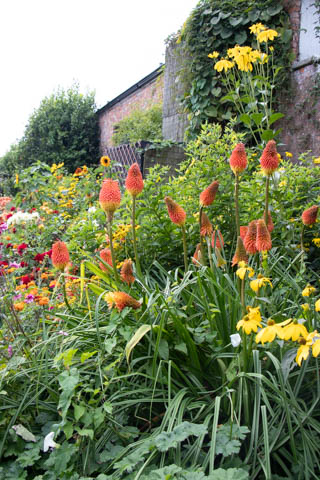 Once the tour was over, we headed back to the walled garden. The Walled Garden is divided into three sections. The walls of the first (the Ornamental Walled Garden) and second sections (the Nursery Walled Garden) are thought to date to the time of Queen Anne (1702-1714), while the third section, the orchard, is Elizabethan (1558-1603). A brochure noted the red brick walls retain heat from the sun, helping to warm the garden plots near the walls. It also noted they have submitted daily rainfall records to the Met for the last 80 years.