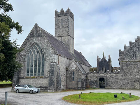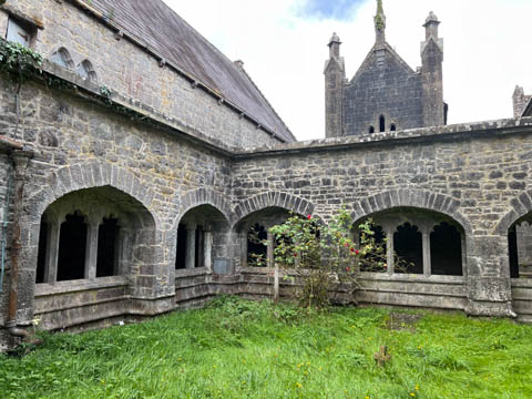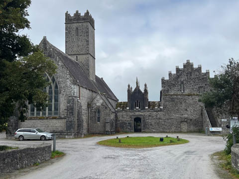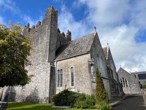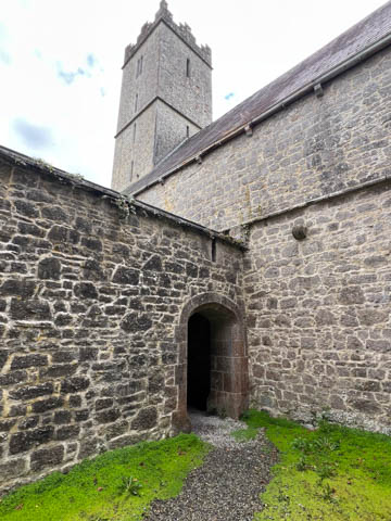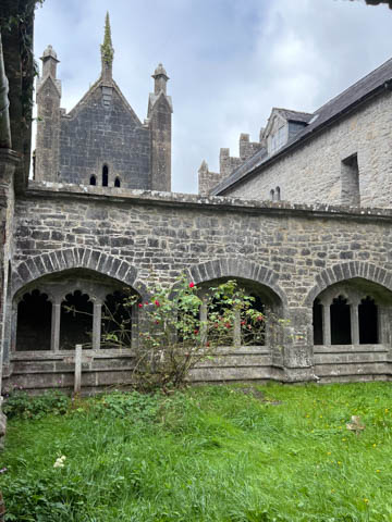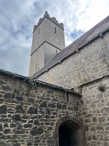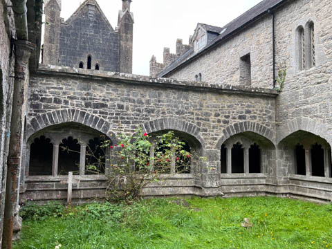 At the road, there was a older monastery and church, which now hosted a small daycare. This turned out to be St Nicholas, part of the Church of Ireland, making it an Anglican Church amid the majority Catholic nation, and likely why it had a daycare. This was formerly the Augustinian Priory, founded over 700 years ago in 1316 by John FitzThomas FitzGerald, 1st Earl of Kildare, as a friary of the Augustinian Order. It was one of three friaries founded in Adare in the Middle Ages. The monks were called black friars due to their black cloaks or habits. So, it was also known as the Black Abbey. A portion of the current church, the cloister (the square walkway forming the center of the monastic buildings), and the Refectory, a hall where the friars ate, are all that remain of these original structures. The original Catholic Priory was suppressed in the reign of Henry VIII when he destroyed monasteries throughout Great Britain and dissolved the Augustinian Order to reduce the power of the Catholic Church. The friars were driven out sometime between 1567 and 1585. The likely relocated to Limerick, as the Augustinian friars there trace their origins to Adare. The buildings sat in ruin for 250 years before being given to the local Church of Ireland congregation as the parish church in 1807. In 1814, the refectory was roofed and converted into a schoolhouse. Between 1852 and 1854, a second restoration of the church was undertaken by Caroline, Countess of Dunraven. She also founded the small school at the site, which is now over 200 years old.