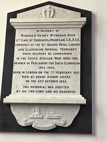 There were a number of plaques in the cloister, dating back to the early 1800s, including one to the housekeeper at Adare Manor and a servant to Caroline, Countess of Dunraven, who funded the renovation in the early 1830s.