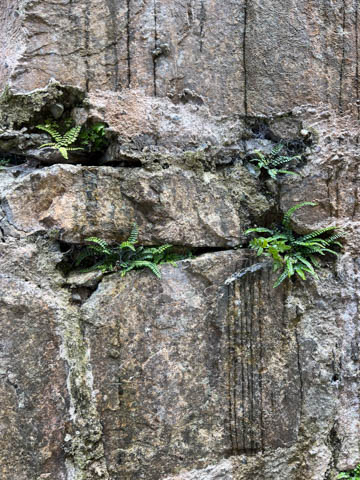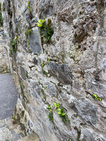 Some fun flowers and moss growing in the stonework.