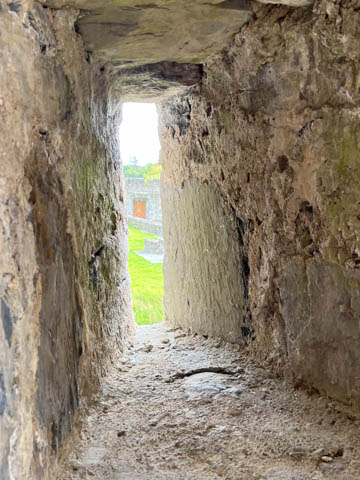 Once inside, we were in a small inner courtyard between a long hall and the keep which had an inner moat. The moat had silted in and was now full of reeds and cat tails.