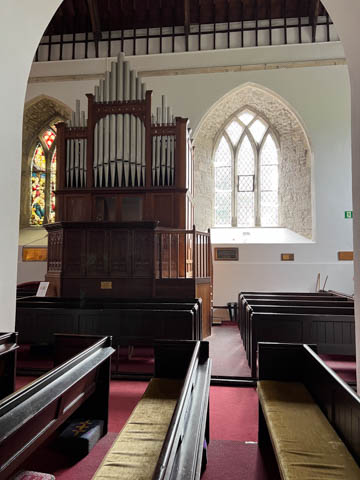 The organ is elevated to protect it from flooding from the nearby river, especially as the church used to be on the riverbank and had its original main door facing the river.