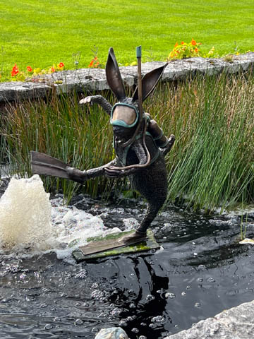 The tour took us through an amazing walled garden which we vowed to return to. Loved the statue of the scuba diving rabbit, which Steve tried to imitate