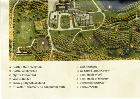 Here are a couple shots from above from the web to provide perspective. Our room was in the left building in the last picture, across the circular drive from the historic castle.