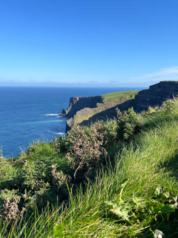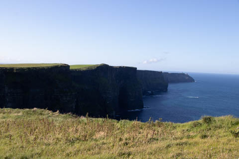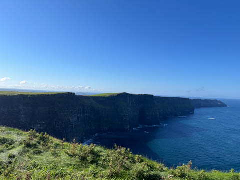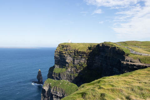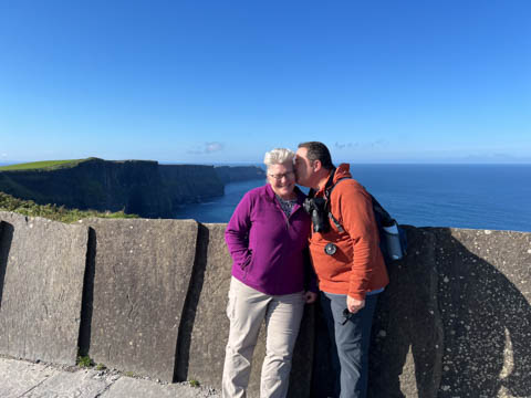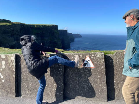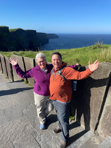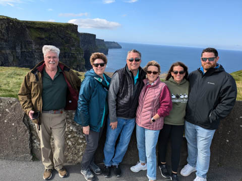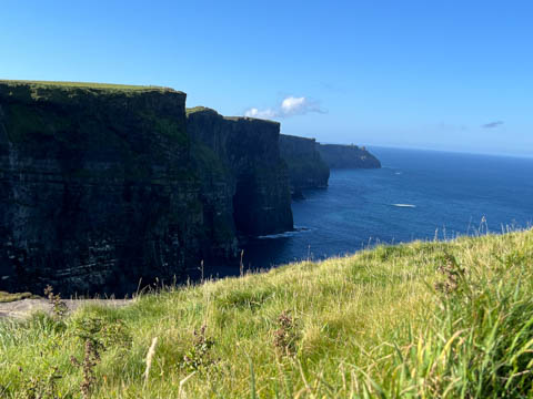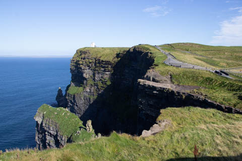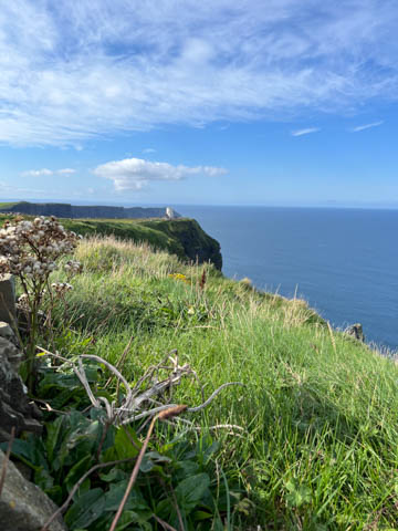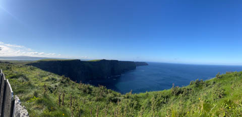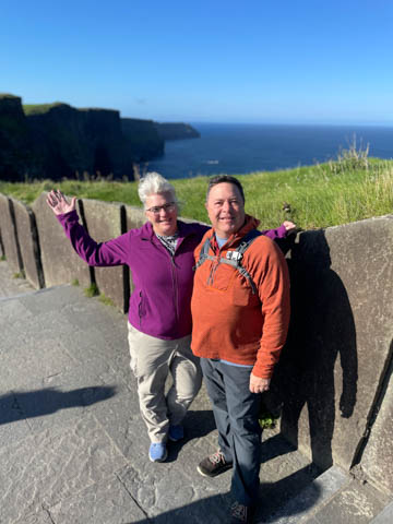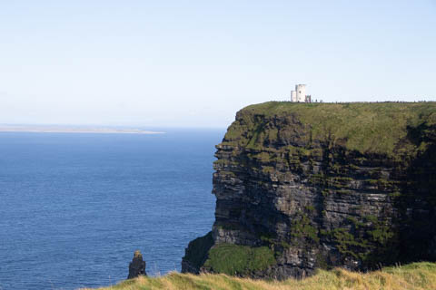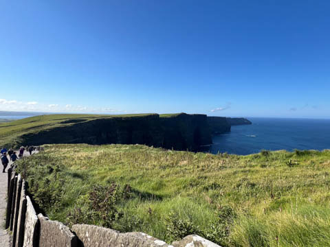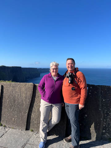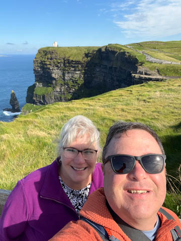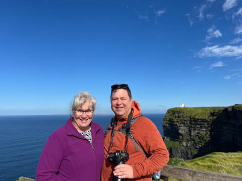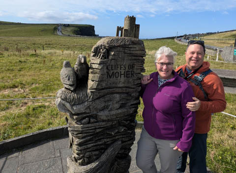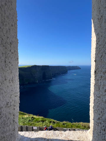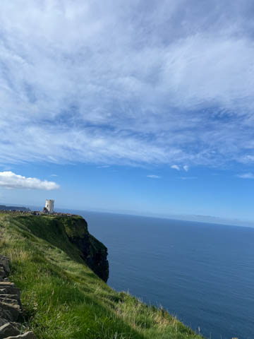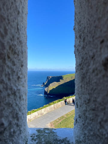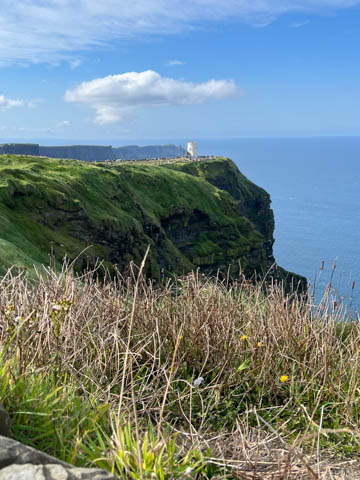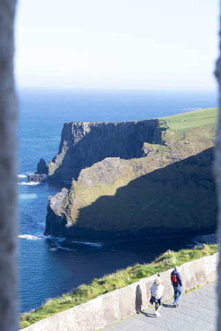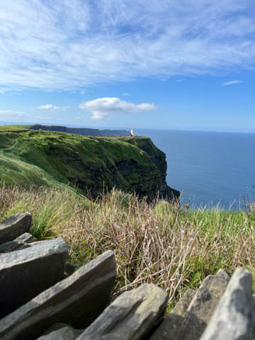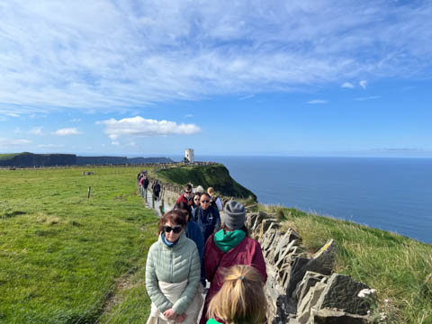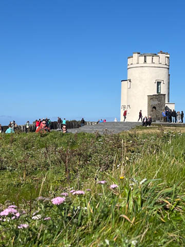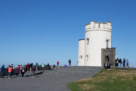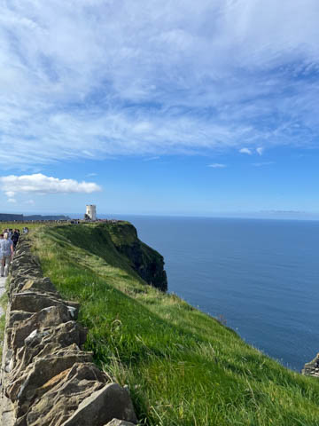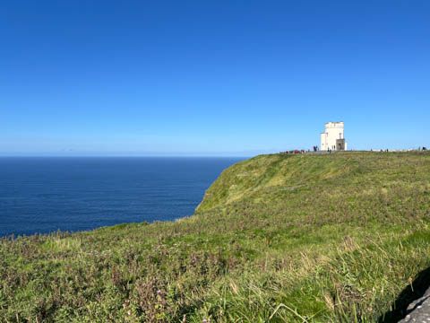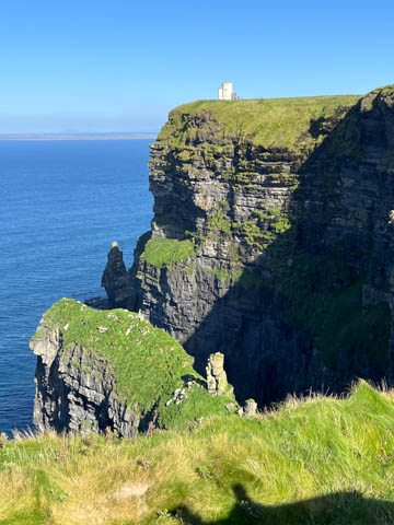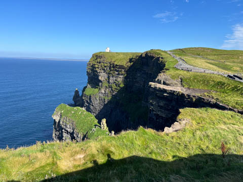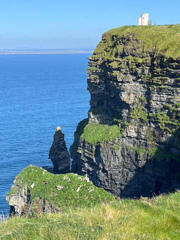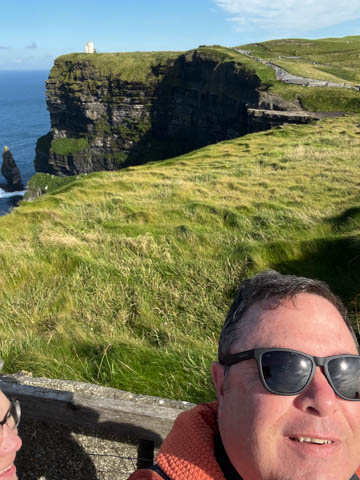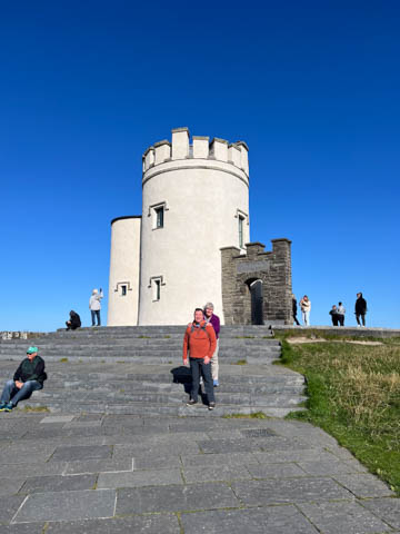 September 2024 (Part 05) Ireland Trip (Day Eight): Dromoland Castle and Cliffs of Moher (Ever-Moher) The next morning we headed out early, unfortunately without a full breakfast due to a mix up in the restaurant, oh well. We were headed for the Cliffs of Moher, arriving early enough to enjoy them before the daily crowds arrived. The famous cliffs are in a bay along the coast fin County Clare overlooking the Atlantic Ocean and the Aran Islands. We first headed north, up the point to O'Brien's Tower. We had assumed this was another of the fifty or so Martello Towers built between 1801-1820s to warn of a Napoleonic invasion. But those are mostly on the east coast. This tower was originally built in 1835 by Cornelius O’Brien, a descendant of Brian Boru, the first High King of Ireland. A local landowner, Cornelius was ahead of his time and believed that the development of tourism would benefit the local economy and help bring local people out of poverty. The tower was used as an observation tower for the hundreds of visitors who even then came to the Cliffs each year to see the breathtaking views. On a clear day, you can see across to the Aran Islands: Inis Oírr, Inis Méain and Inis Mór. Looking to the left you capture the whole of Liscannor Bay with Lahinch in the distance and Liscannor village in the foreground. Looking to the right you are met with beautiful views of Galway Bay. What a beautiful site on a truly beautiful day.