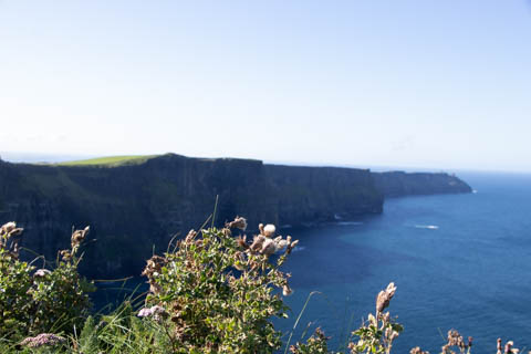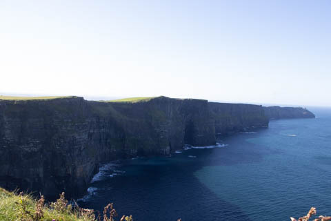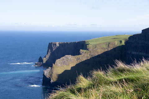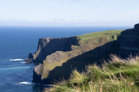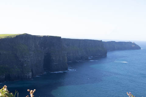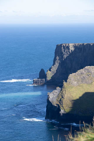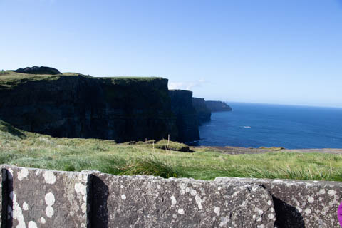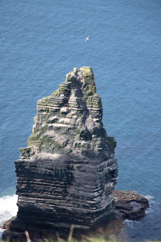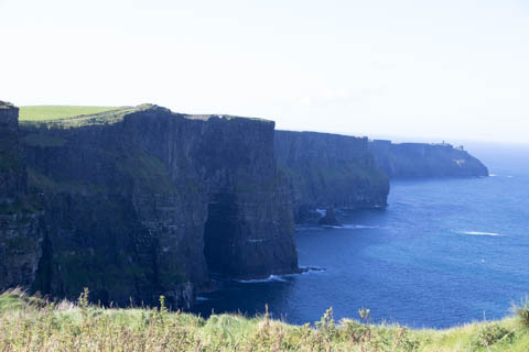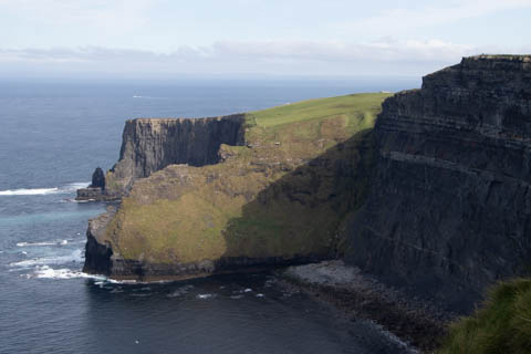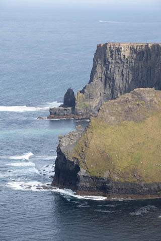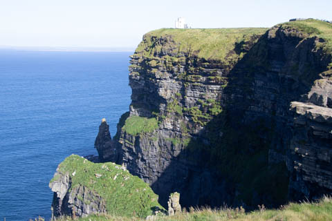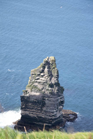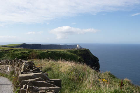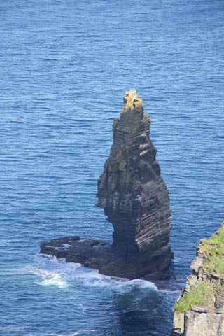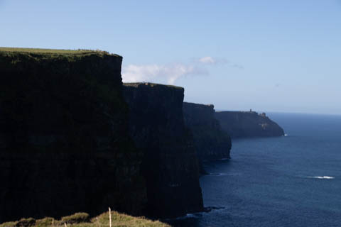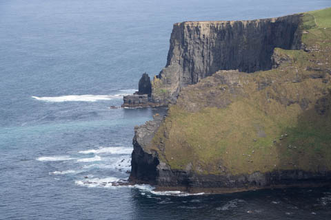 The view from the tower was impressive. A nice image of the huge cave in the cliffs along the southern arm. This unnamed cave was used in filming of Harry Potter and the Half Blood Prince to represent the cave where a Horcruxe is hidden. An island next to the Skelligs, known as Lemon Rock, was used for the filming to provide the sport where they materialized offshore of the cave. The makers of the Half Blood Price used CGI wizardry to combine Lemon Rock with the Cliffs of Moher.