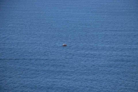 One loan boat on the sea. We asked Leisha why the Disney trip didn't include a boat ride, as it would likely be a stunning view. She said they boat would be canceled more than it would run due to sea conditions.