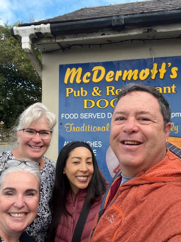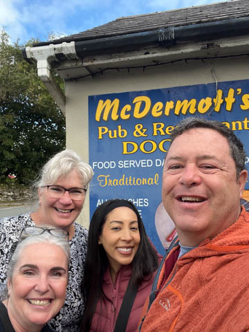We realized the early arrival paid off as there were a number of tour buses now filling the parking lot. We pulled out headed up the coast to the nearby McDermott's Pub for lunch. Here we are with Gabby and Leisha.