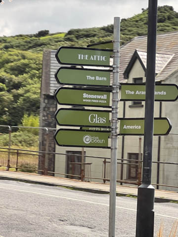 Love the sign on the corner, which had directions to the offshore Aran Islands, America, and Dublin.