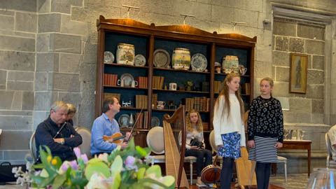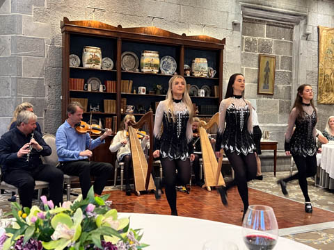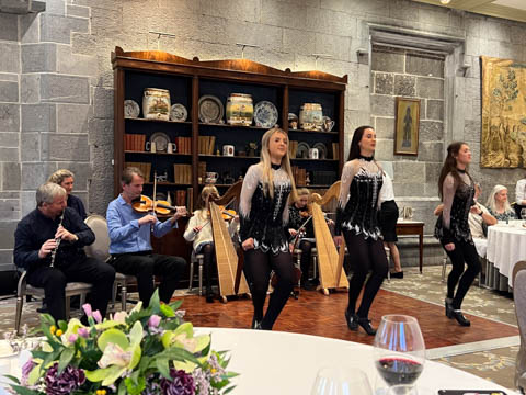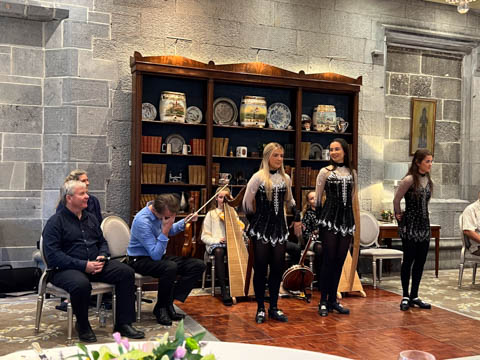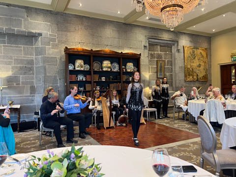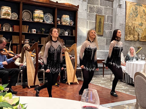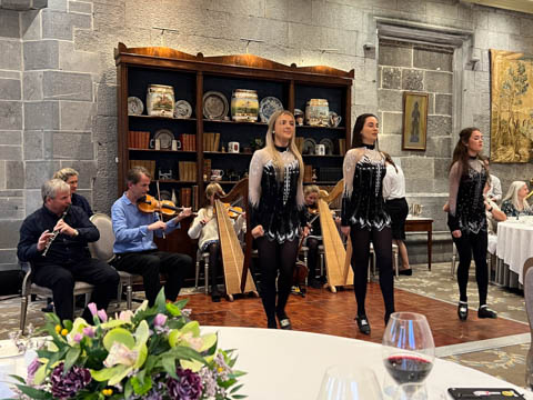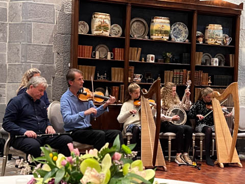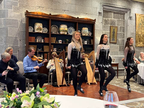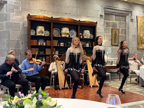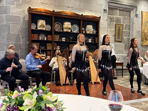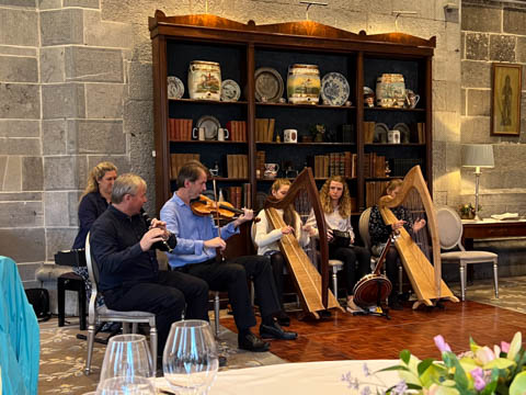 Dinner was in a private dinning area where a small group of musicians were waiting. We soon learned the lead (playing violin) was a local music teacher, who was accompanied by his wife on keyboard, his twin 12 year-old daughters on harp and violin, and their cousin on concertina and banjo. They were also joined by a friend, who was a celebrated flutist.