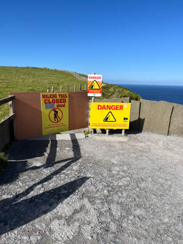 Unfortunately, we soon discovered the path was closed off once it reached private land. Apparently, two people had fallen to their deaths in the last month or so, and they landowners who grazed their cattle there had closed off the path mostly out of liability concerns. The closed sign included several pictures of stupid people vying for the Darwin award by sitting on the cliff edge or otherwise getting way to close to the edge. Oh well.