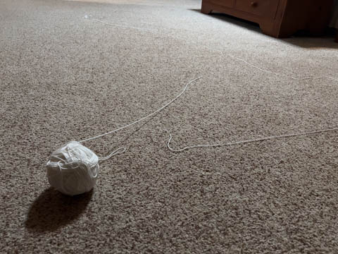 Surprised to see so many deer in our neighbors yard across the street. Also had to laugh at Alexa's reaction when we sent her this picture of a ball of yarn that had appears in our room. She had secured it away, sure the cats couldn't and wouldn't get to it.