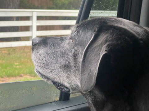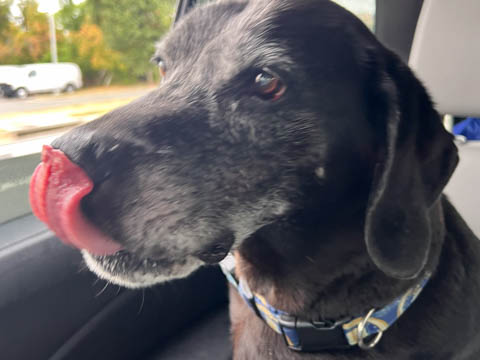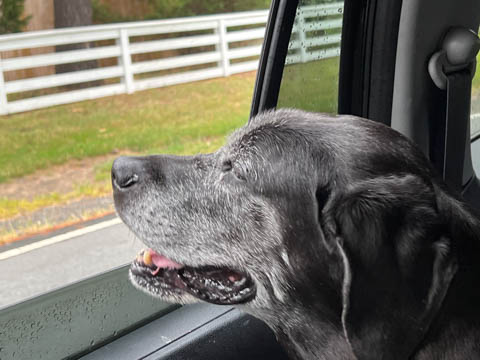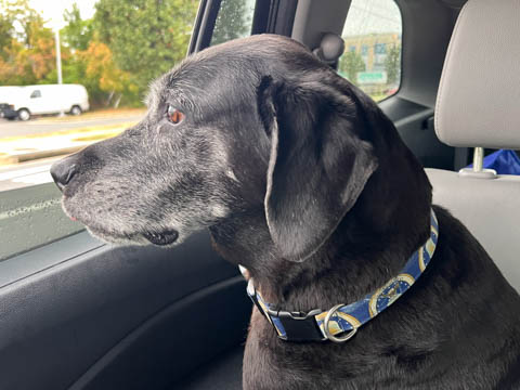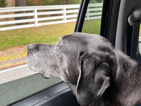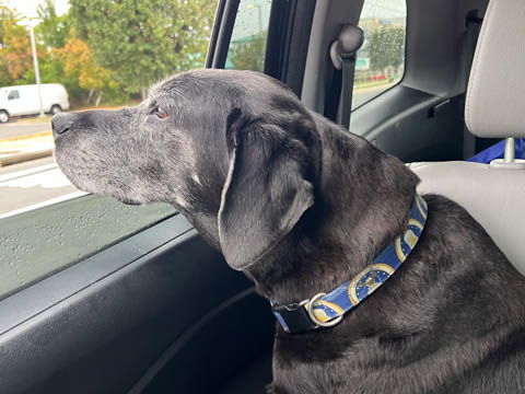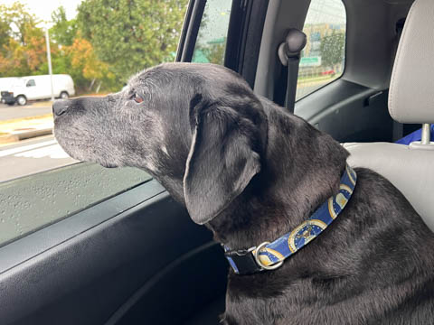 September 2024 (Part 07) Misc Fun Steve took these at a stoplight. Ever since he lost his leg, Tank has suddenly wanted to have his nose out the window, something he really didn't do much before.