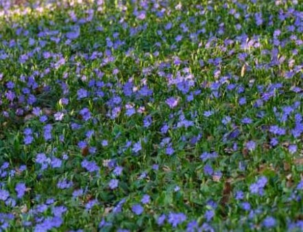 | Special Features | Excellent ground cover, and superb for suppressing weeds. Forms a dense carpet of glossary rich dark green foliage, and produces 1.0" lavender-blue pinwheel shaped single flowers in Spring. Attracts butterflies. Low maintenance, and hardy. Disease, heat, humidity, insect, and deer resistance. Tolerates dry soil, drought, and heavy shade. |