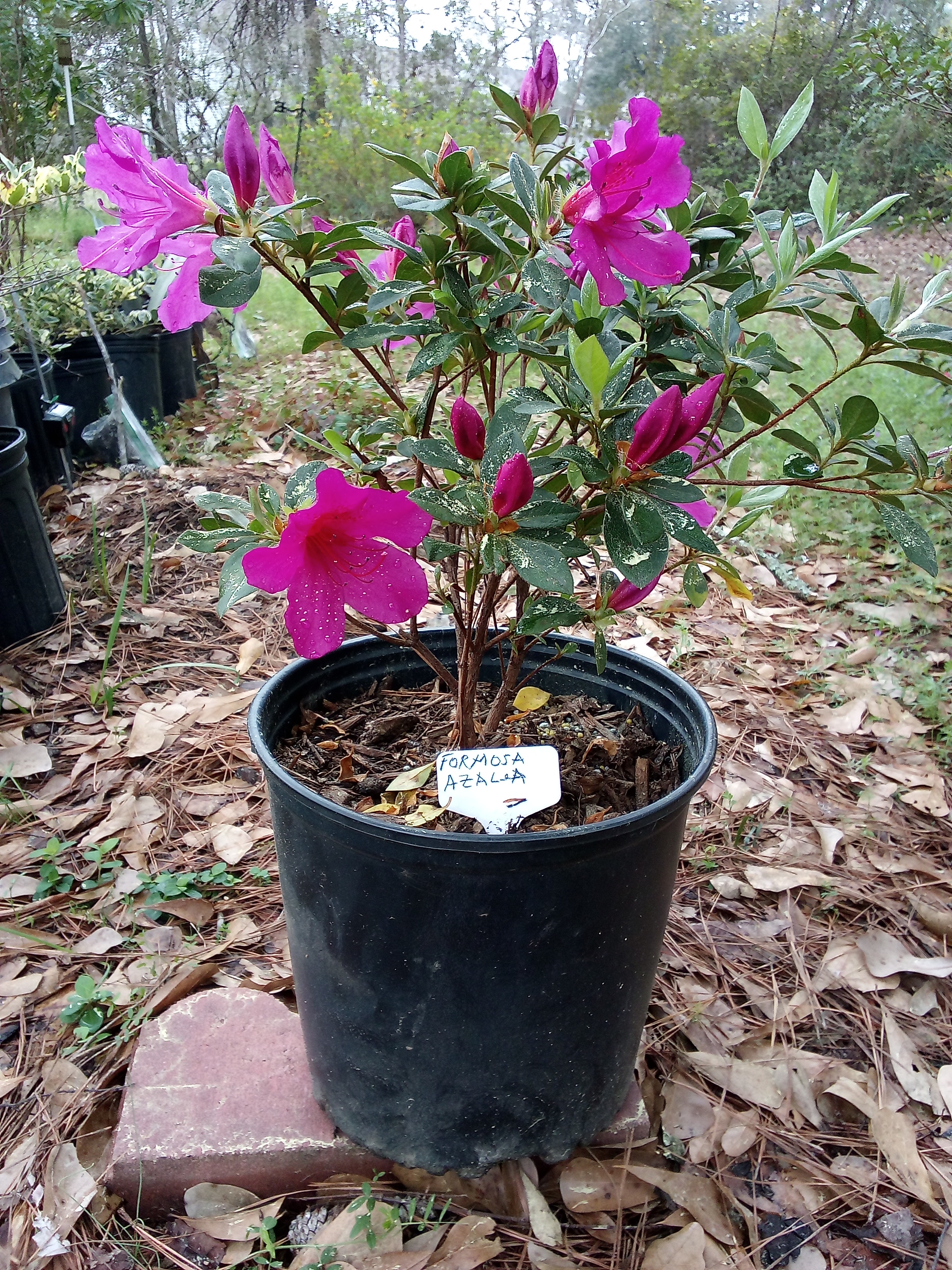 Large, 2.5 to 3" wide rich showy multi-color flowers with lavender pink with darker accent blotch cover broad leaved evergreen shrub in early & mid spring. This low maintenance shrub attracts songbirds, and hummingbirds. Excellent foundation, border, beds, background, mass planting, or privacy hedge with upright rounded shape. See Specifications below. Shop the Formosa (Pink) Azalea for sale. Buy direct from a small family owned South Carolina grower.